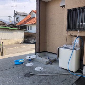 使用していない電気温水器が同一敷地内にありましたので、こちらは撤去処分をさせていただきました。 既存の配管に、虫や土埃など入らないよう、しっかりと養生して作業完了です👷